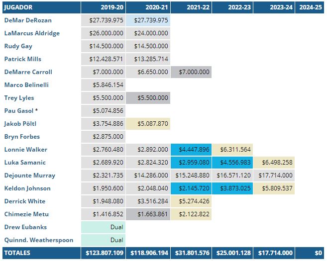La pasada temporada ya fue bastante dura para los Spurs, en la que perdieron a varios jugadores emblemáticos de los últimos años, difíciles de sustituir tanto en la cancha como en los corazones de los aficionados. Ginobili se retiraba y Tony Parker cambiaba de equipo, pero además jugadores clave en la última década como Danny Green y, sobre todo, Kawhi Leonard, abandonaban Texas. La pérdida de estos jugadores, sustituidos por otros como DeRozan, Belinelli o Poetl se notó muchísimo en defensa, aspecto en el que San Antonio siempre había sido uno de los mejores de la liga. Sin embargo, en la pasada temporada, acabaron en el puesto 20.º en ratio defensivo, una anomalía en la era Popovich.