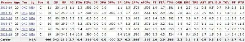 Desde que aterrizó en el draft 2013 en la posición número 12, tres puestos por delante de un tal Giannis Antetokounmpo, ha ido progresando en su juego y estadísticas cada año. Por primera vez, el neozelandés está promediando un doble-doble de media, perfilando su juego hasta ser una pieza fundamental para los de Oklahoma.