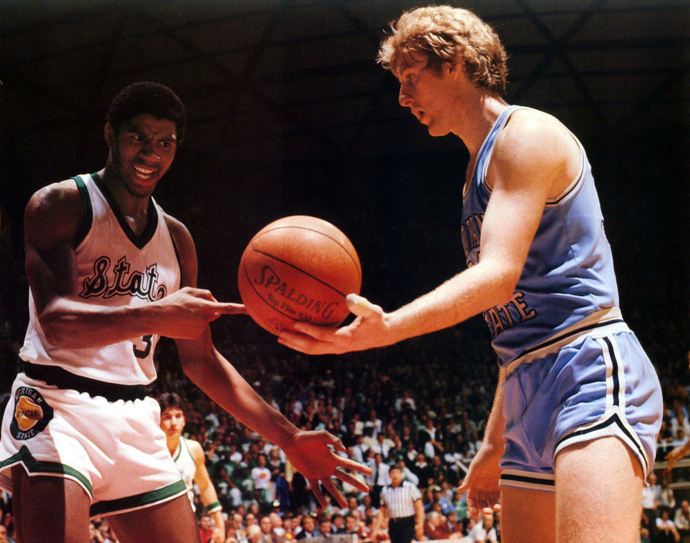 La temporada 1978-1979, la segunda de Earvin en Michigan, tendría un final soñado para el base y marcaría el inicio de una de las rivalidades más míticas de la historia del baloncesto profesional estadounidense. Los Michigan St. Spartans volvieron a clasificarse para el torneo de la NCAA (Liga universitaria americana) y esta vez avanzaron hasta la final donde tendrían que enfrentarse a unos Indiana State liderados por un tímido pero sublime tirador blanco, Larry Bird. Esa noche empezó una rivalidad que años después se convertiría en una amistad inquebrantable. En el partido universitario más visto de la historia de la TV americana los Spartants de Johnson se proclamaron ganadores con un Magic nombrado MVP por decisión unánime. Así fue como Johnson dijo adiós a la liga universitaria por todo lo alto y se presentó al Draft de 1979 de la NBA.