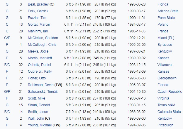 - John Wall. A sus 27 años ya no queda duda de que John Wall es uno de los mejores bases de la competición. Con más de 23 puntos y 10 asistencias por partido en la temporada pasada, hablamos de un jugador que hace mejores a sus compañeros y cada vez se entiende mejor con la otra referencia del equipo, Bradley Beal.