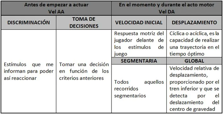 La velocidad antes de actuar: El jugador percibe los estímulos de su alrededor, tiene que ser capaz de discriminar para realizar una toma de decisiones correcta.